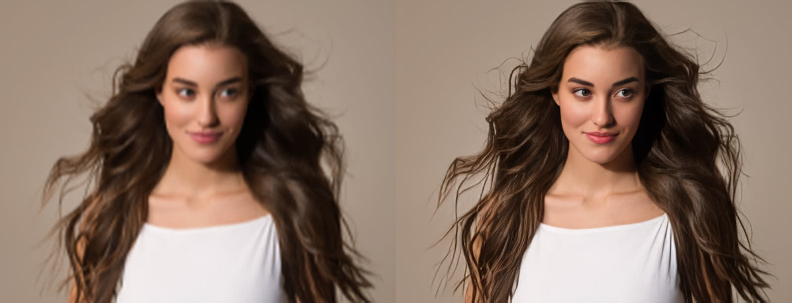 Use Cases: Ideal for improving low-quality portrait photos. It effectively handles images requiring a balance between beautification (soft skin) and clarity (sharp background).